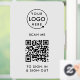 A simple custom white business vinyl window cling decal sign template in a modern minimalist style which can be easily updated with your company logo, QR code and custom text.