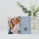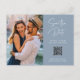 These simple and elegant dusty blue wedding save the date postcards feature modern handwritten script typography along with your favourite personal photo and a QR code that leads to your wedding website.