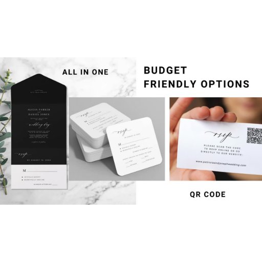 Offer your guests the possibility to choose if they respond by mail or online. Modern minimalist elegant white and black budget affordable wedding response rsvp small note card with envelopes OPTION included featuring a chic trendy calligraphy script. ++++++++++++ You can upgrade to a bigger size. ++++++++++++ Easy to personalise with your details! Suitable for modern elegant classic formal weddings.