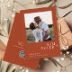 Minimalist trendy chic casual typography script verona sunset orange and white wedding save the date card with custom photo and text. +++++++++++ Suitable for a rustic modern any season wedding.