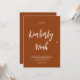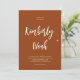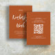 Elegant trendy hand lettered bride and groom script names informal all in one wedding invitation with scanning QR code to website in simple white and rust burnt sunset orange. ++++++++++++++++++ You can change the colours of text and background after selecting CUSTOMIZE further option. ++++++++++ The invitation is suitable for modern style informal wedding ceremonies and receptions.