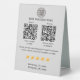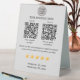 Encourage happy customers to leave feedback with this minimalist black and white review request sign. Designed for modern branding and small business promotion, this sleek display features space for your logo, QR code, and a direct call to action to leave a 5-star review on platforms like Yelp or Google. Ideal for salons, pet grooming, boutiques, cafes, or studios looking to boost visibility through positive customer opinions. A stylish and effective marketing tool that makes it easy for visitors to rate your shop with just a quick scan.