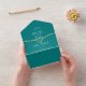 Celebrate your big day with this elegant teal and gold all-in-one wedding invitation. The modern design features a gold rope heart on a deep teal background with stylish white text. This convenient seal and send invitation includes an RSVP card with QR code for easy online replies and space for your wedding website. No separate envelope is needed, making it both practical and eco-friendly. Perfect for couples planning a modern, chic, and stress-free wedding day.