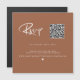 Less hassle, no missing mail when you invite your guests to RSVP online with your QR code that sends them directly to your wedding website. The design features a minimalist, simple rustic terracotta creative with a modern very elegant calligraphy RSVP script. Easily replace with your own QR code and your personal information of choice. There are QR code generators online if needed. Simply place the keywords "QR code creator" into Google search and lots of free options will appear for you to choose from.