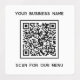 Easily add your own QR code menu destination website URL and choice of text to this design. Remove the top or lower text if you prefer. Minimalist and professional to promote your brand. Perfect for a restaurant, bistro, cafe, hair or beauty salon or any small business offering a range of products or services.