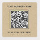 Easily add your own QR code menu destination website URL and choice of text to this design. Remove the top or lower text if you prefer. Minimalist and professional to promote your brand. Perfect for a restaurant, bistro, cafe, hair or beauty salon or any small business offering a range of products or services.