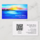 QR code Tropical beach business card, with a sunset ocean design. White and black lettering can be customised with your own text. You also add you own information for a scannable QR code. Filled with blue and red colours, this card adds a modern abstract touch while promoting your business.