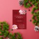 This elegant Chinese wedding invitation features watercolor peonies and a gold double happiness symbol on a dark red background. Bride and groom names in an elegant handwritten script. Chinese wedding invitation or tea ceremony invitation. At the backside are the details and a scannable qr code for your wedding website.