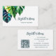 Professional business card featuring a watercolor green tropical leave. the white background gives the design a touch of minimalism. A custom name in an elegant handwritten script. With a template for your QR code and your socials on the back. Perfect for vacation rental property managers, interior designers, home staging, horticulturists, travel agents, florists, landscape designer, fashion boutiques, beach boutiques, travel agents or any island based business.