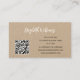 This rustic business card features a white line art hand shadow rose with a text in floating stylish script. Modern floral boho chic design on brown beige kraft paper. On the back is a template for your QR code. Perfect for florists, hair stylists, landscaping, event planners....