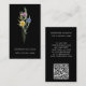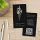 This professional business card is decorated with watercolor wildflowers on a black background.