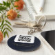 Circle Keychain with your own QR Code and Custom Text and your website. For small business, sellers and crafters (etsy, eBay, Amazon and other). Elegant Minimalism and Modern style in dark navy blue, gold and white colouring. Customise this sticker easily by uploading your QR Code, writing text and your website in the "personalisation" menu. Remember that you can always change the design a little, for example, remove text that you don't need, etc.