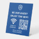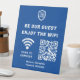 A simple custom blue business scan to Connect Wifi QR code pedestal sign in a modern minimalist style.