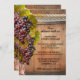 After or post wedding invitation featuring a rustic wine barrel, vine and grapes with a rope and lace. This invitation has an easy to customize QR code template on the back.