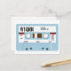 This is a cassette tape postcard design for an amateur radio QSL card. It has customisable text fields for call sign and location. On the cassette label, it has areas for you to fill in the QSO information such as time, date, mode etc.