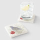 The coasters are gorgeous, a quality feel and heavy weight. They look like a precious archeological find. A rustic stone juxtaposed with a modern floral black and white print. I like the way the print goes slightly imperfect on the cut stone edges giving them a kind-of natural beauty.