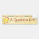 Quakers bumper sticker on a tie dye background. With the words peace/ justice/ simplicity equality/ unity on it. With a bright sun.