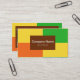 An attractive business/profile card template with the background divided into four panels with a centre panel in a fourth tonally contrasting colour. In the front design all the panels including the one in the centre are of the same size. The design on the reverse of the card retains the colour panels as on the front but has a larger centre panel area to accommodate your name and contact details.
