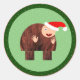 An adorable Christmas Sticker design that adds a touch of literary whimsy to your seasonal Holiday Greeting. These Sticker features a design of Quasimodo, The Hunchback of Notre Dame, wearing a cute little Santa hat on a green background with a bright red boarder surrounded by pixelated snowflakes for a ugly Christmas sweater look.