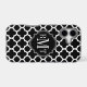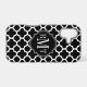 © 2013 Socialite Designs. Our elegant quatrefoil design in black and white mobile phone case has a banner for your monogram, initials or name.