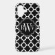 © 2012 Socialite Designs. Our elegant quatrefoil design in black and white iPhone case has a banner for your monogram, initials or name.