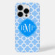 Quatrefoil Light Blue and White Pattern Monogram Case-Mate iPhone Case