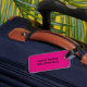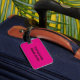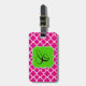 This quatrefoil print tag will be a great way to identify your bag. The colours are pink and white with a bright green frame for your initial.
