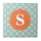 Quatrefoil Pattern Turquoise Orange with Monogram Ceramic Tile