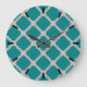 Quatrefoil teal and gray large clock