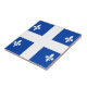 This design features the flag of the Canadian province of Quebec (known as Québec in French). It is the second-most populous province of Canada, after Ontario. It is the only one to have a largely French-speaking population, with French as the sole provincial official language. Most inhabitants live in urban areas near the Saint Lawrence River between Montreal and Quebec City, which is the capital.