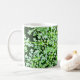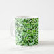 This mug features a lovely, lacy white flower called the wild carrot. It was introduced and naturalised in North America, where it is often known as Queen Anne's Lace. The single flower head is set against a background of green, yellow and black.