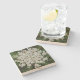 The coasters are gorgeous, a quality feel and heavy weight. They look like a precious archeological find. A rustic stone juxtaposed with a modern floral black and white print. I like the way the print goes slightly imperfect on the cut stone edges giving them a kind-of natural beauty.