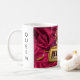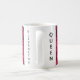 Mug features Queen Elizabeth II with crown and picture frame on a red satin background. Features the words Queen Elizabeth II. Makes a great gift for home or the office.