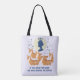 Queen Elizabeth And Whimsical Brigade Of Corgi Dogs. Witty royal watchers totebag. "If you anger the Queen, she will release the corgis!" A tribute to Queen Elizabeth II and the House of Windsor, classic Queen with crown silhouette commanding her brigade of Welsh Pembroke Corgi with lilac background and cute polka dots. Royal lovers, corgi moms and dads, or just the avid totebag enthusiast.