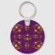 This keychain / key chain, with royal purple / violet colour background, with a scattered repeat pattern of has the gold crown tiara, with heart shaped diamonds, gems, and pearls, called Queen of Hearts gold crown tiara, was created by me, Kristie Hubler, for my customer's dog Queenie's fabric photo frame, this crown was hand painted onto satin and adhered to the frame. Created in October 2001, copyright protected. The crown sells on fabric here at @Zazzle at http://zazzle.com/fabricatedframes/fabric or http://spoonflower.com/fabric/1371922