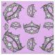 Queen Hearts Silver Crown Tiara pattern pink lilac Fabric