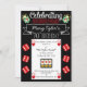 Guests will love the casino theme for this special 70th birthday party invitation for a special lady who loves to gamble. Complete with dice, chips and the queen of hearts card, this 70th birthday party invitation is easy to personalise by filling in the given template.