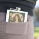 The flask itself is fine. It’s a cheap flask, obviously bought in bulk, however am prepared to overlook that. Given that it is a personalized item, I would have liked to have seen gift boxing instead of the generic packaging. Terrible printing, and/or quality. It’s a cheap, tacky vinyl. It is not cut straight and is also applied in a way that it is overhanging the bottom, causing the glue to catch on items and it will eventually roll and tear, damaging the wrap.