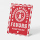 It is sturdy than I expected. Was worried about the material being flimsy but it is not. It is printed on some sort of plastic material. It should serve well at our wedding as long as wind isn’t too bad. Otherwise we will put some paper weights behind it and should be fine.