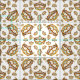 This repeat scattered pattern of gold crowns and tiaras called "Queen of Hearts" is by Kristie Hubler, the crown tiara art is copyright protected, October 2001. It has heart shaped diamonds, and pearls, and is available in gold & silver.