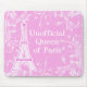 Pink girly monogram computer mousepads with the words "Unofficial Queen of Paris" you can personalise and beautiful Eiffel tower graphic, along with a pretty floral motif. Nice floral pattern background on this girlie mouse mat with flowers for that feminine gift for yourself or your friends.