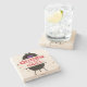 The coasters are gorgeous, a quality feel and heavy weight. They look like a precious archeological find. A rustic stone juxtaposed with a modern floral black and white print. I like the way the print goes slightly imperfect on the cut stone edges giving them a kind-of natural beauty.