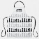 Classic black and white chess women apron for chess lovers, featuring chess figures in a geometric pattern. Modern chess pieces design