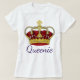 Let the world know you're the Queen. This royal t shirt features a queen's crown in gold and red with the word "Queenie" underneath in black script.