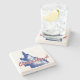 The coasters are gorgeous, a quality feel and heavy weight. They look like a precious archeological find. A rustic stone juxtaposed with a modern floral black and white print. I like the way the print goes slightly imperfect on the cut stone edges giving them a kind-of natural beauty.