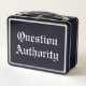 This lunchbox featuring the phrase “Question Authority” rendered in a striking gothic / blackletter font turns an everyday essential into a powerful personal statement rooted in critical thinking and independent thought. The dramatic lettering gives the message a timeless, almost medieval intensity, evoking old manuscripts, rebellious pamphlets, and the long history of challenging power through ideas and words. It’s a design that feels bold, intellectual, and unapologetic, perfect for those who believe curiosity and skepticism are strengths rather than flaws. Carrying this lunch pail sends a clear signal that questioning, thinking deeply, and forming your own opinions matter, even in the smallest details of daily life.