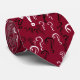 This cool necktie features distressed question marks of varying sizes and fonts in black and white on burgundy.