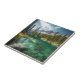 Add a touch of natural beauty to your home with this stunning ceramic tile. The quiet and natural landscape features steep rocky mountains with imposing peaks, an emerald green river that you can see through, and a green pine forest at the foot of the mountains. This landscape is of exceptional beauty, making you appreciate the beauty of nature.
