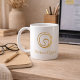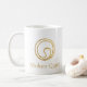 Quiet Gold Swirl features the phrase Molten Quiet in a refined serif, paired with a gold-lined swirl on a clean white ceramic base. The minimal layout suits coffee breaks, desk setups, or open shelving, blending easily with neutral kitchens and modern daily routines.