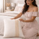 Defined by an offset vertical stripe of soft marble tones, this design pairs natural movement with clean ivory edges. The quiet contrast suits neutral living rooms, bedrooms, or reading chairs, adding visual structure and light balance without overwhelming surrounding decor.